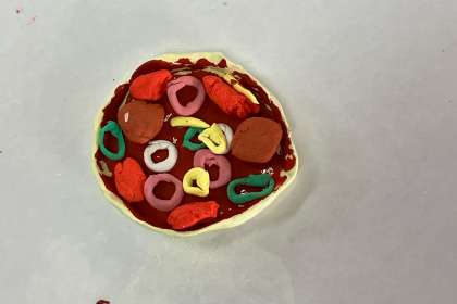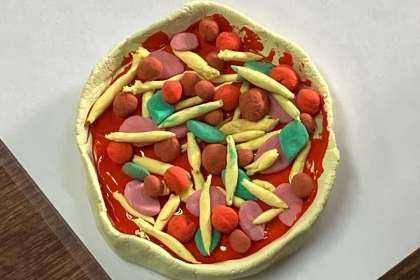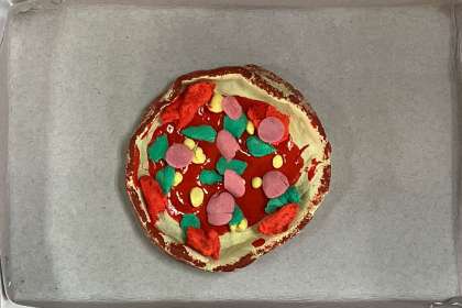 今日は、ピザを作りました。どの作品もとても美味しそうなピザの出来上がりです。