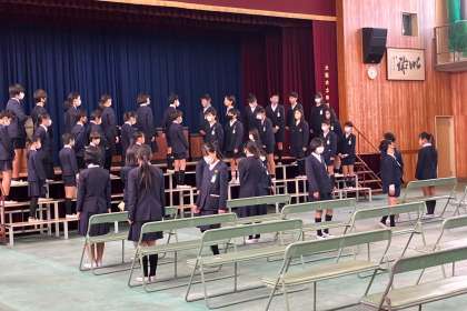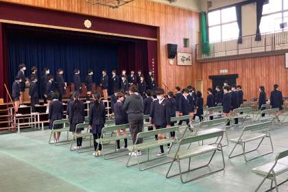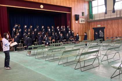 今日は、卒業生と在校生とで、式の進行に合わせて練習しました。
