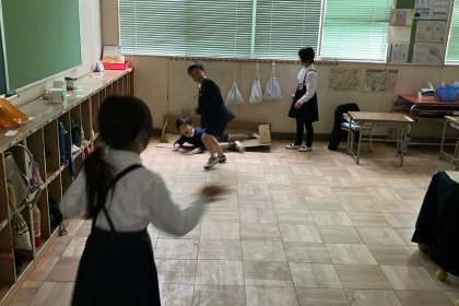 お楽しみ会で、お化け屋敷をしました。みんな、結構、怖がっていました。