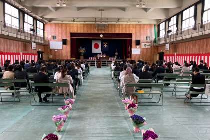 入学式を迎えました。新入生の子どもたちは、少し不安なドキドキ感と大きな期待のワクワク感とが入り混じった表情で、みんな明るく元気に、保護者の方と手を繋いで、登校してきました。