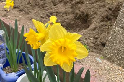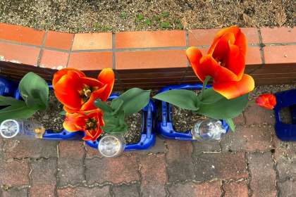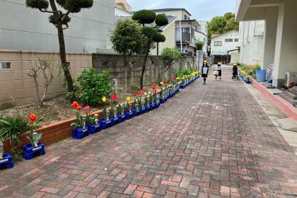 子どもたちが、毎日、水やりをしていた球根が、見事に花が咲きました。