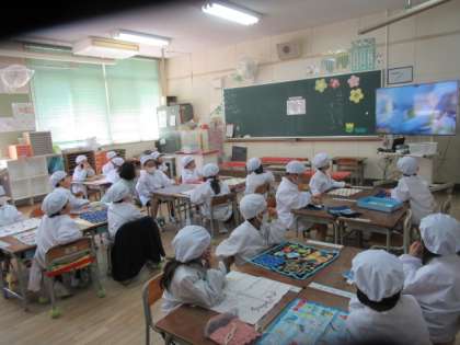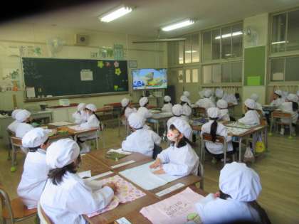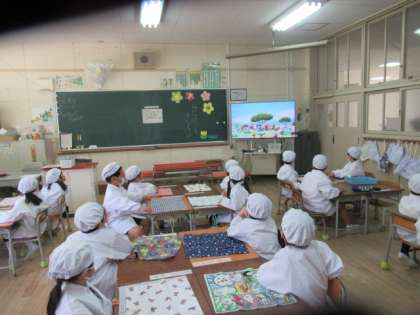 給食を待つ間、NHK FOR SCHOOLを観て過ごしました。