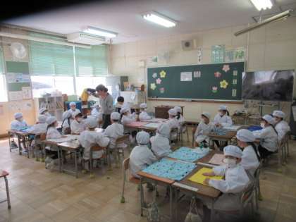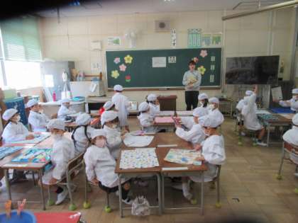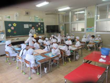 「お腹が空いたけど、配膳は、まだかな」みんな、お行儀よく待つことが