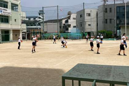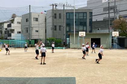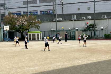 ボールを上に投げている間に、手をたたくという動作をしています。手をたたく回数が増え、難しさがレベルアップしていきました。