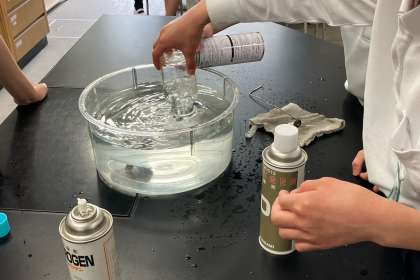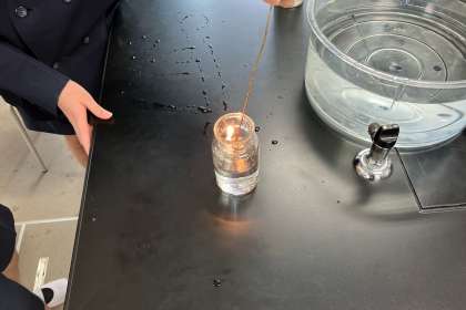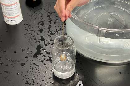 酸素、窒素、二酸化炭素のうち、物を燃やす気体はどれかを、実験して調べました。