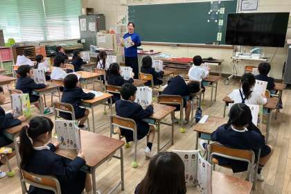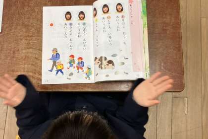 ひらがなの発音について、口の開け方や手を叩いてリズムで言葉を声に出す方法で学習しました。