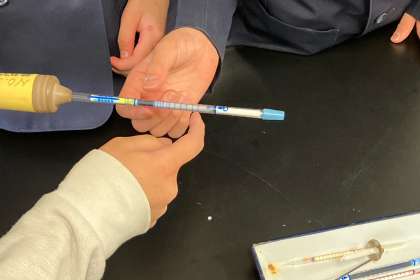 物が燃える時の気体の変化について、実験をして調べました。