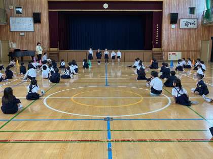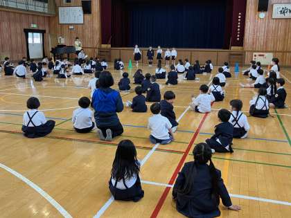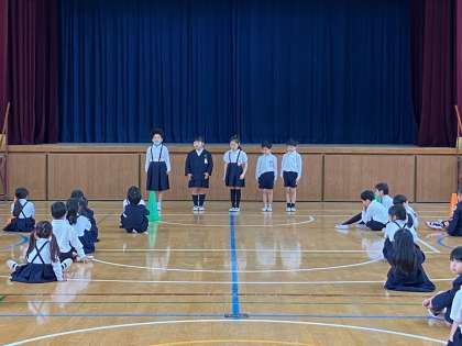 1年生と2年生で、これから1・2年生がペアになって色々な活動を行なうことになりました。その前にお互いを知るために、名刺交換をしました。その後、ジャンケン列車をして楽しい時間をすごしました。