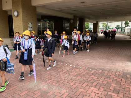 地区ごとに集まって、登校時の安全について話し合いました。その後、地区班別に、下校しました。