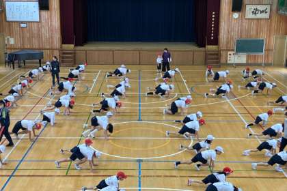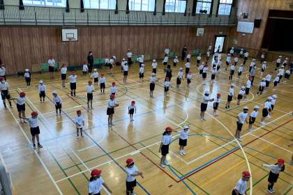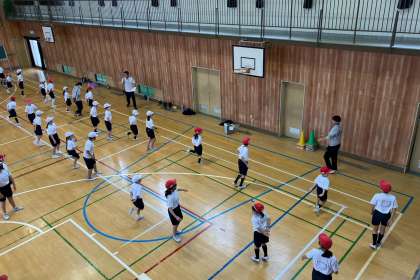 6年生が1年生に、新庄っ子体操を教えました。
