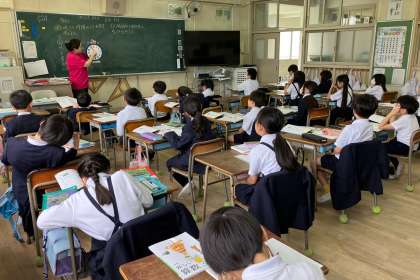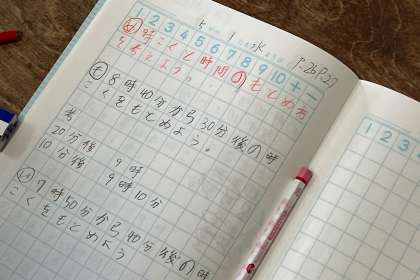 時計を使って時刻と時間の求め方を学習しました。