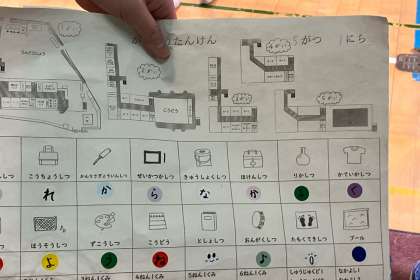 探検が終わって先生から最後のシールをもらいました。