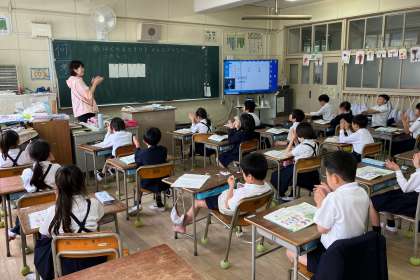 手拍子や指拍子をとって、はくを感じて歌いました。