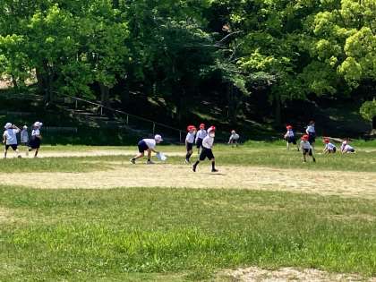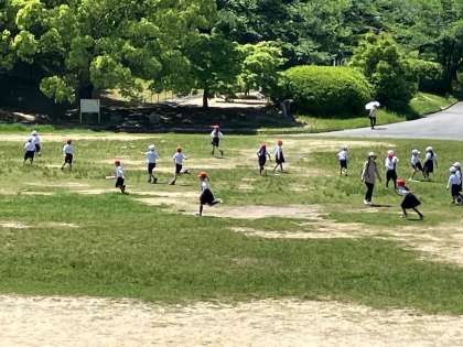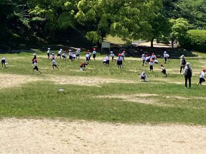 表裏で赤と白になったカードをばら撒いて、白は赤に赤は白にひっくり返すゲームを1年2年対抗でしました。