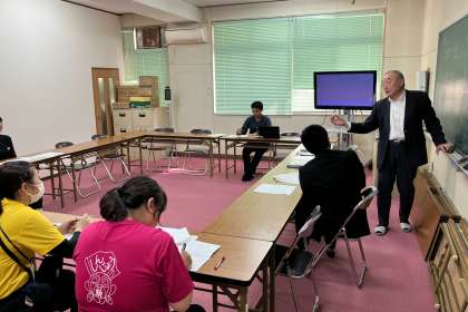 スクールアドバイザーの先生が、研究授業のご指導に引き続き、算数科の指導について、ご講義してくださいました。
