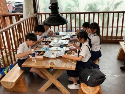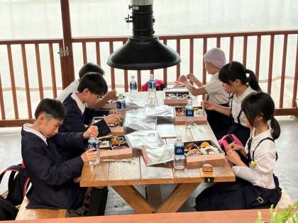 12時半に、たぬき村に到着し、集合写真を撮ったあと、お昼ご飯です。
