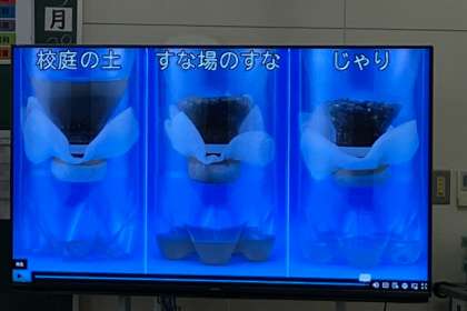 土の粒が大きくなるほど、水はしみやすくなることを学習しました。