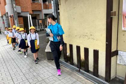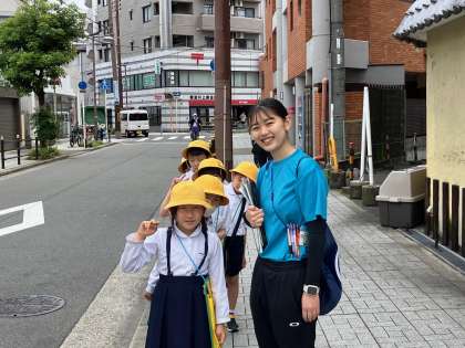 2時間目に、各班ごとに分かれて、町探検に行きました。
