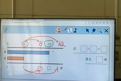 どちらのリボンをもとにするかを決めて、倍を使って比べる学習をしました。