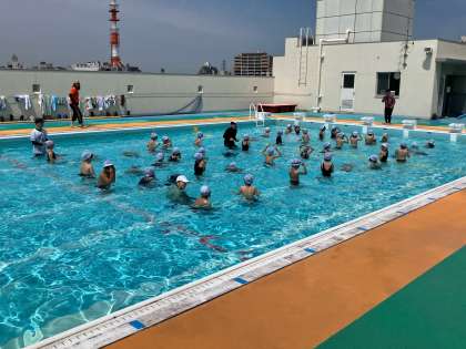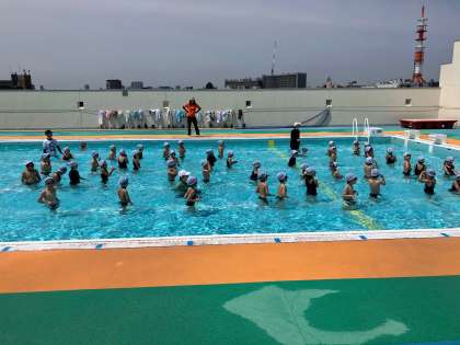 本日より、入学して初めてのプール水泳です。不安感より楽しさが優っていたようで、とても嬉しそうにプール水泳に取り組んでいました。