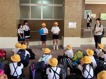 係の子どもたちがの司会のもと、出発式を行いました。保護者の皆様におかれましては、早朝よりのお見送り、誠にありがとうございました。子どもたちにとって、心に残る良き思い出となるよう、尽力してまいります。お時間のある時に、ホームページをご覧いただければ幸いです。寂しい思いをされるかもしれませんが、お土産話を楽しみに、明日の帰りまでお待ちください。