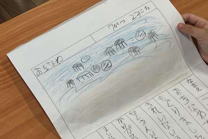 お友だちが、どのような絵日記を書いてるかを、順番に回して見ていきました。