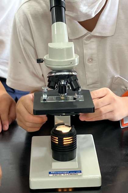 おしべの先についている粉を顕微鏡で管作しました。