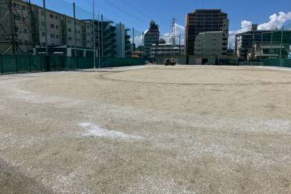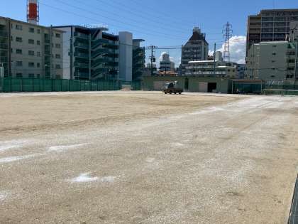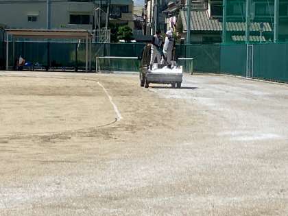 運動会に備えて、グランド状態を良くするために、にがりまきをしました。
