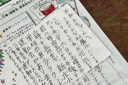 ハガキに、運動会への案内文を書きました。