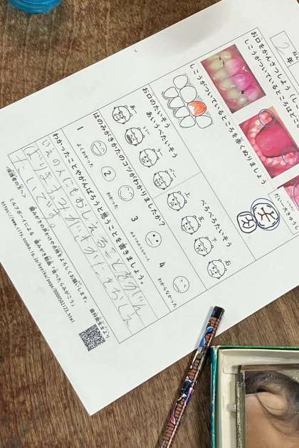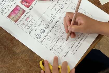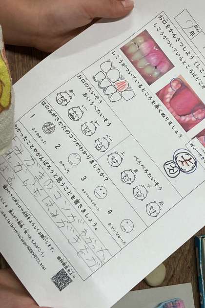 歯科医の先生と歯科衛生士の方に来ていただいて、2年生対象に歯磨きの仕方などを教えていただきました。