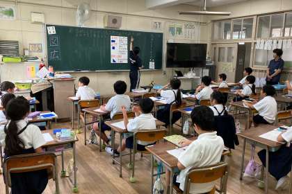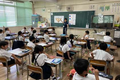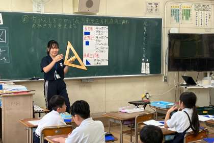 教育実習生の先生による正方形、長方形、直角三角形の書き方の授業をしてくださいました。