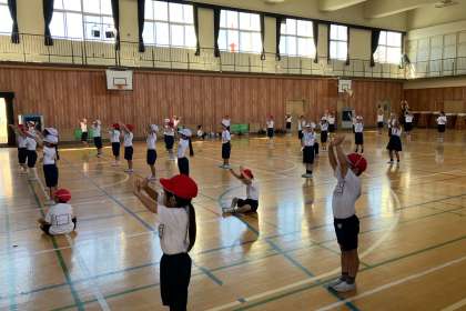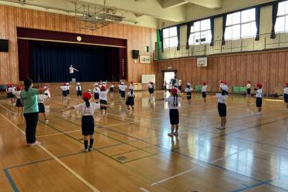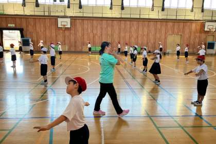 運動会に向けて、団体演技の練習をしています。