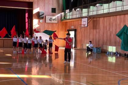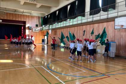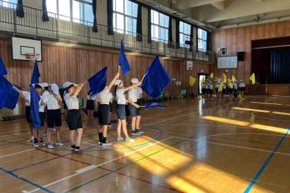 団体演技フラッグに取りかかりました。