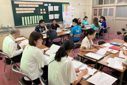 研究授業後、討議会を行い、その後講師の先生にご示唆をいただきました。