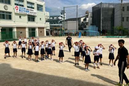 影の学習で、運動場でかげふみをしました。その後、遮光器で太陽をみてみました。