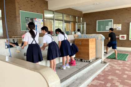 委員会のこどもたちが、後片付けをしてうさぎさんを運動場のお家に戻しました。