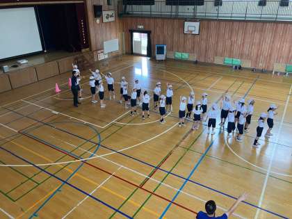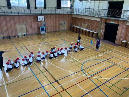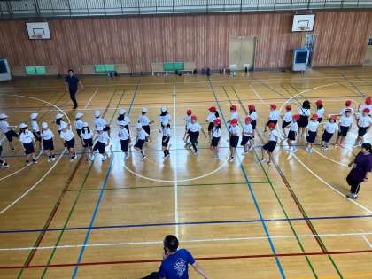 ダンシング綱引きの練習をしました。踊りながら入場します。