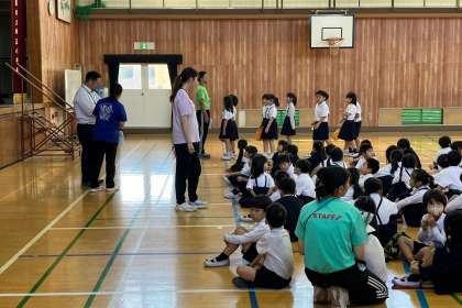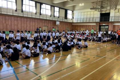 休み時間に、不審者が校内に侵入したとの想定で、避難訓練を行いました。