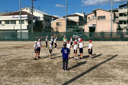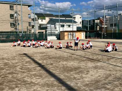 今日は、運動会の会場になる第二運動場で練習をしました。騎馬戦の体形の練習です。
