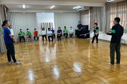 午前中の避難訓練に引き続き、放課後、東淀川警察の方にお越しいただいて、教職員向けの不審者対応研修会を行いました。