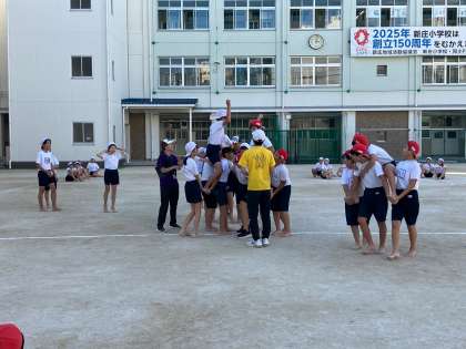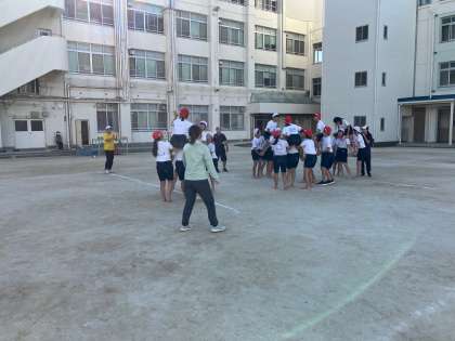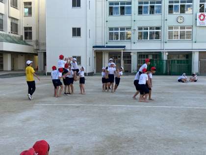 騎馬戦の練習をしました。騎馬を組むのが、少し難しかったようです。