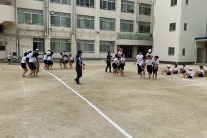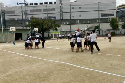 騎馬戦の練習をしました。まだ、少し慣れていない感がありました。