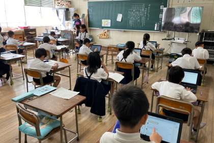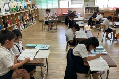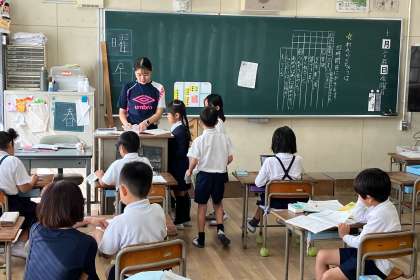 わか算ができた子は、先生に見てもらっています。