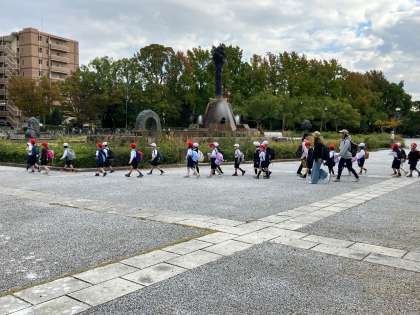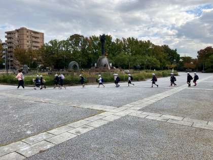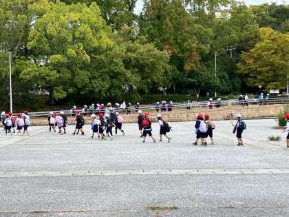全校オリエンテーリングとして、服部緑地公園に行ってきました。天候も良く、たてわり班ごとにポイントを回りました。ポイントでは、先生方がクイズやジェスチャークイズなどを出題して、班で協力して答えていました。保護者の皆様には、早朝より昼食のご用意をしてくださり、ありがとうございました。