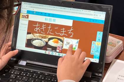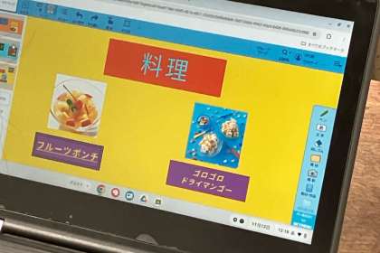 都道府県の食べ物を調べて紹介するためのシートを作成しています。と子どもたちは、とても手際良く作業を進めています。