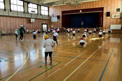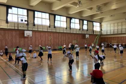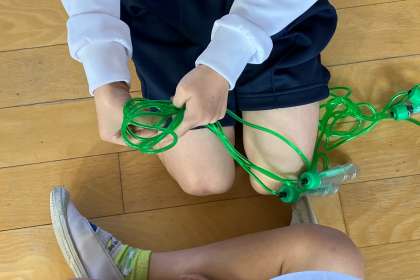 縄跳びを初めました。まずは、とび縄の扱い方などを学習しました。