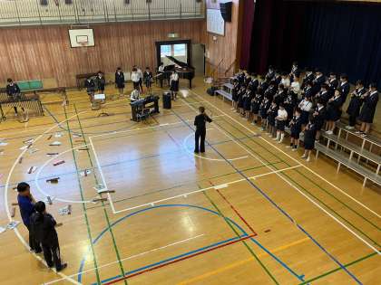 本日より、1・2組合同で講堂にて練習を開始しました。