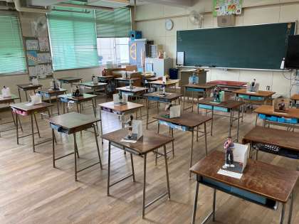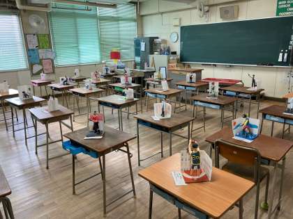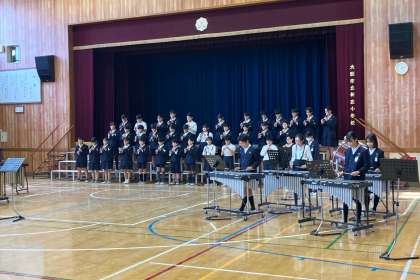 6年生は、講堂で音楽科の発表をし、教室には、図工の制作品が展示されていました。