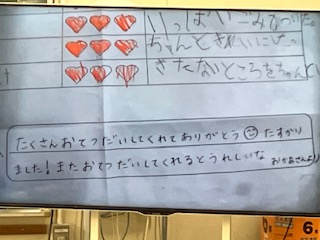 お家の方から、お仕事頑張ったことへのコメントをもらいました。