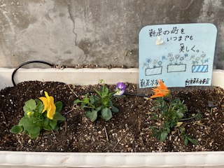6年生が、地域の皆さんの協力を得て、学校の周りに新しい花を植えました。